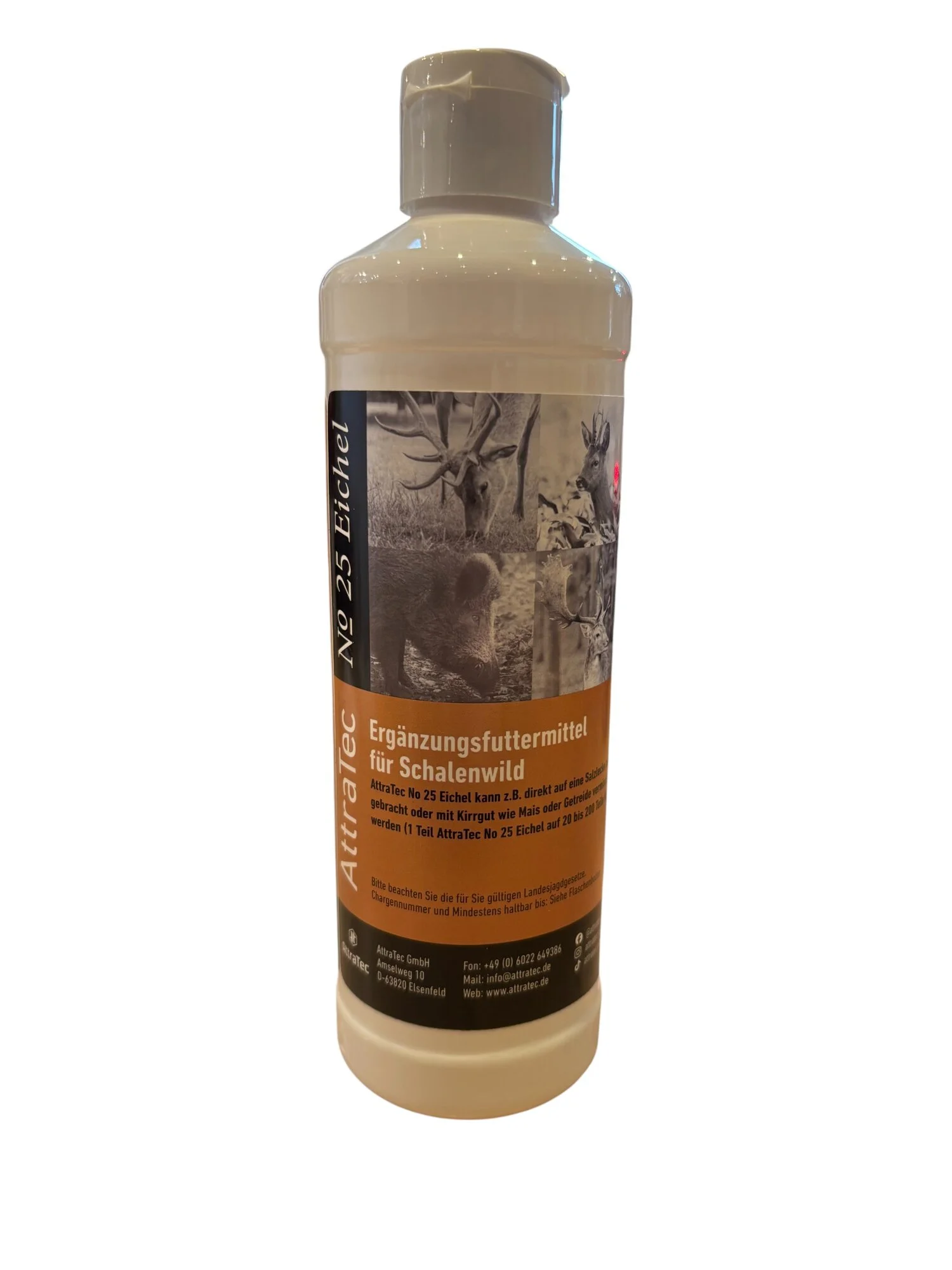 AttraTec No. 25 Agern – kraftig agernduft og smag, der øger vildtets besøg og ophold ved foderpladsen. Nem at bruge på majs, korn eller saltsten.