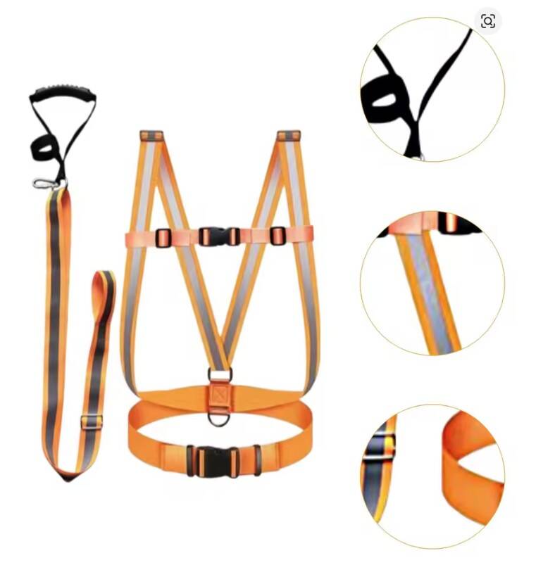 Solid og justerbar sele i stærk signalorange med refleks – perfekt når hunden skal føres sikkert på vildsvinejagt eller andre former for drivjagt.