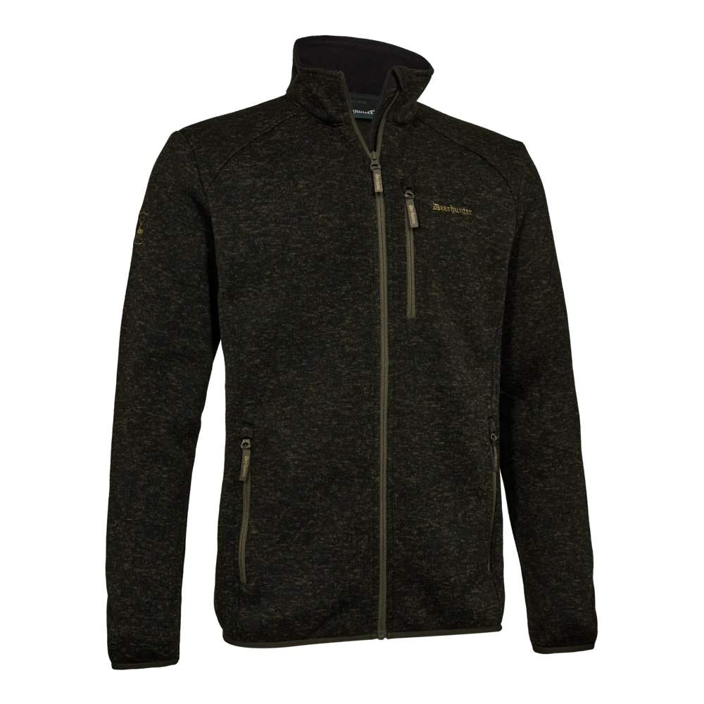 Moor strikket jakke er udviklet med fokus på komfort og funktionalitet. Den er fremstillet i blød, lydsvag polyester med en slidstærk anti-pilling behandling, som sikrer lang holdbarhed og pålidelig varme i felten. Det fleksible materiale med tovejsstræk giver god bevægelsesfrihed under aktivitet – uanset om jakken bruges som yderlag eller som et åndbart mellemlag.