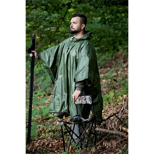 Praktisk hætte-tæppe i let polyester. Mål: 105 × 140 cm, vægt: 200 g. Leveres med praktisk bærepose. Farve: grøn – perfekt til udendørs, camping eller som hurtigt varmegivende tæppe på farten