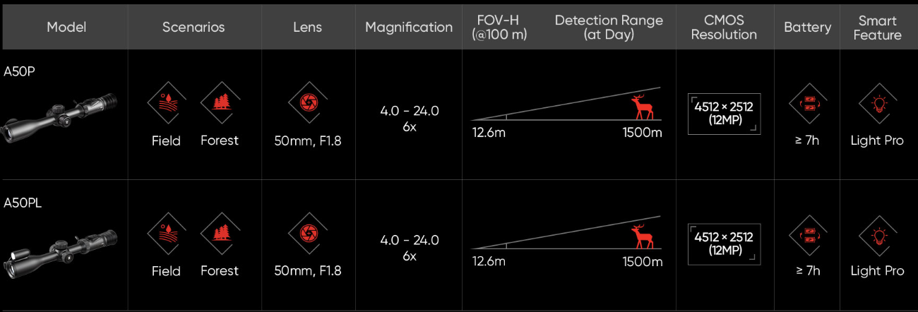 Avanceret digital sigtekikkert med 4K-opløsning, farvevisning om dagen og skarpt sort/hvid-billede om natten. Perfekt til jagt under alle lysforhold – med indbygget laserafstandsmåler i LRF-modellen.