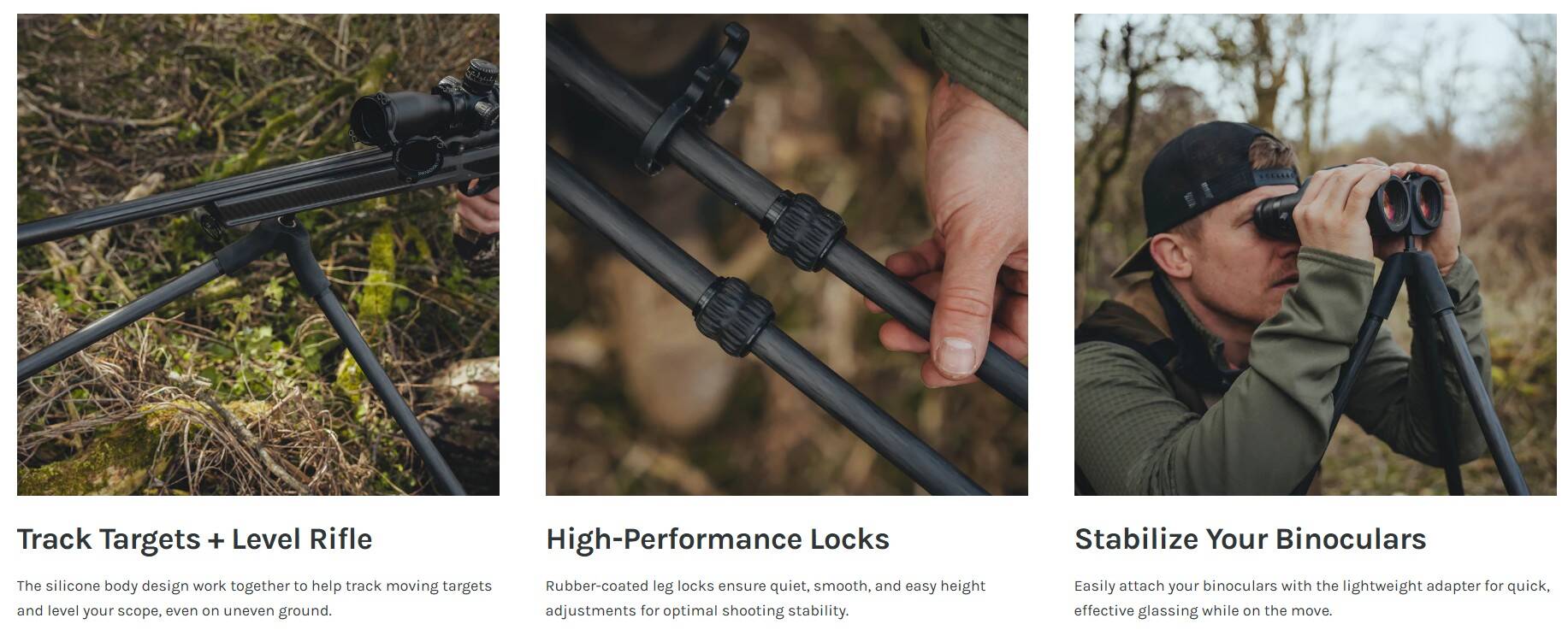 SpringBok Tripod er designet til jægere, der kræver hurtig reaktion og maksimal stabilitet i marken. Med innovativ SpringBok Silicone-teknologi kan du skifte fra liggende til stående position på få sekunder – uden justeringer eller låse.